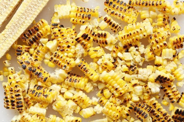2 ears fresh corn, husked and charred over an open stovetop