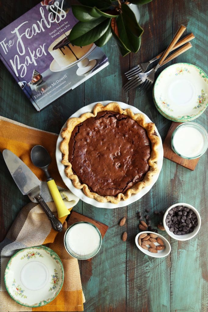 Sometimes the question is…. what can’t I put in a pie crust. Prompted by Erin McDowell’s new book The Fearless Baker (GET IT!) the answer is definitely not brownie batter because BROWNIE BATTER IN PIE CRUST suddenly makes all the sense in the world.