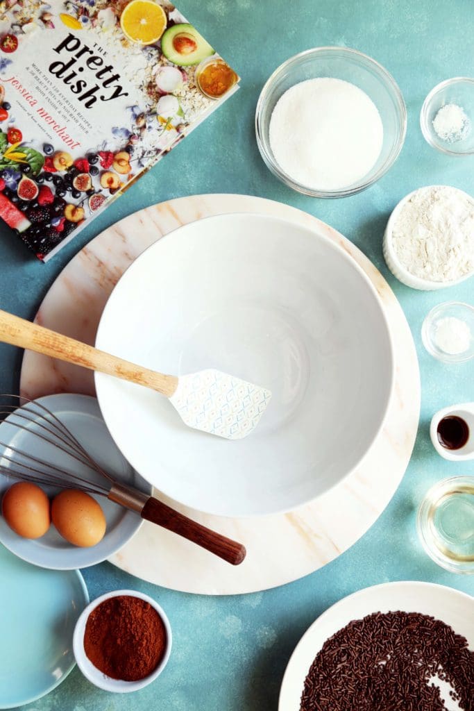 โข a generous supply of sprinkles. Specifically the ‘jimmies’ variety of sprinkle as they’re easy on the teeth and don’t bleed their color during baking. I used chocolate but you could easily use rainbow.