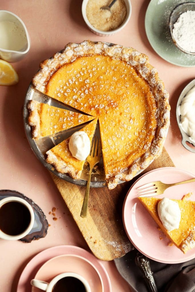 - Remove from the oven and allow to cool to room temperature. Serve at room temperature or chill the pie overnight to set and serve chilled with lightly sweetened whipped cream.