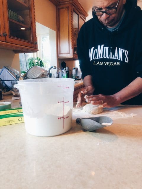 I moseyed into the kitchen the following morning to my dad taking his parbaked crust out of the oven. Ok ok.. we’re on track.