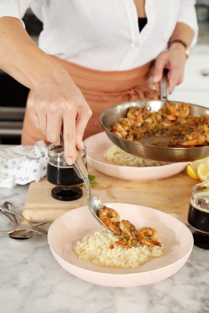 One of you makes the risotto (I always pronounce it the Gordon Ramsey way in my head). The other makes the shrimp รฉtouffรฉe.