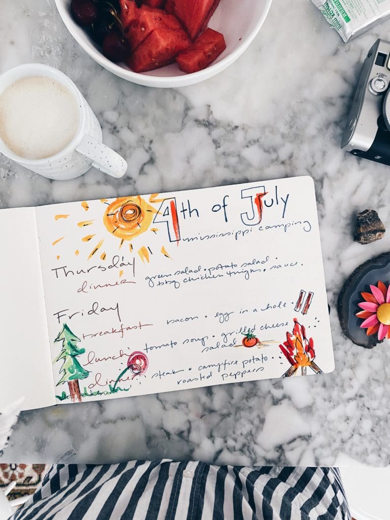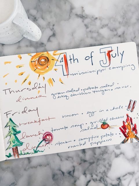 Before we start talking about camping food, let’s acknowledge that there are different kinds of camping. This upcoming camping trip is an RV camp – so I’ll have a refrigerator, small stovetop (that I won’t really use) a fire pit, and grill. I want to cook all my food outside over a fire but I have access to refrigerator which is ideal for a long weekend away.