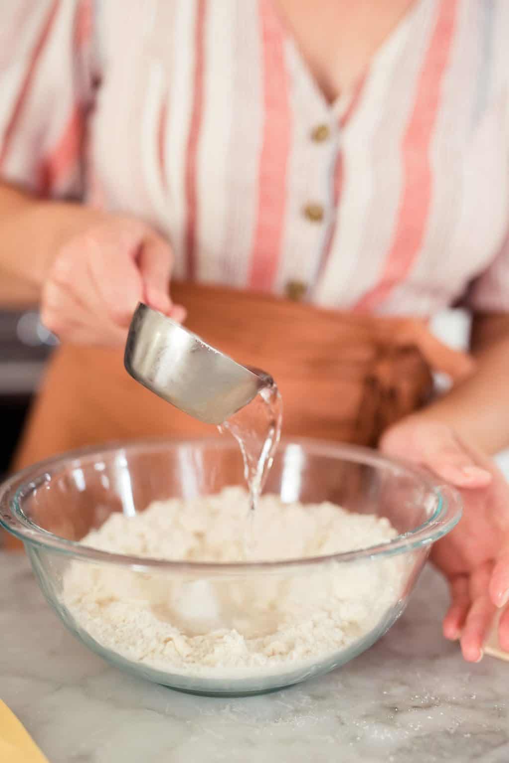 I like to reserve a few tablespoons of water just in case my dough doesn’t ask for it all.