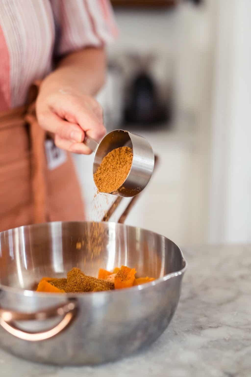 Spices are key to this pie. We’ll add a questionable but correct amount of ground coriander, cinnamon, and nutmeg.