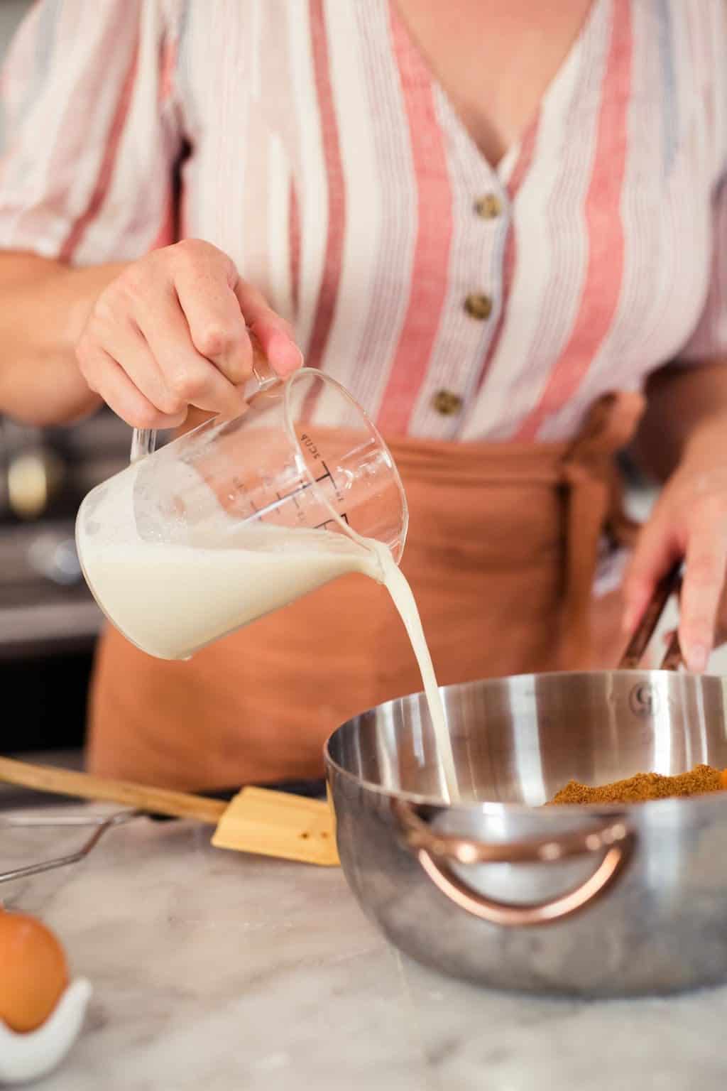I made a gluten free / dairy free version for myself this year and it is fantastic! I used Califa Farms vanilla oat creamer as I wanted something a bit closer in texture to evaporated milk. It was incredible! Highly suggest!