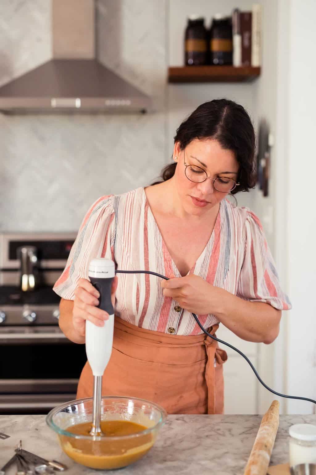 - Whisk in the remaining oat milk, eggs, maple syrup, and vanilla extract. Whisk until well combined. Make sure that the mixture is as smooth as possible. I used an immersion blender to completely smooth the mixture.