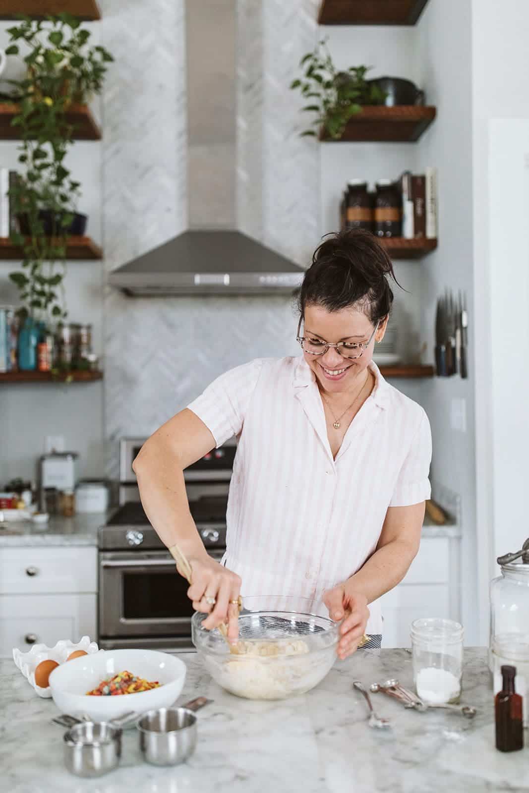 I used King Arthur Flour’s Measure for Measure Blend for these gluten free sprinkle cookies. Use whatever gf flour you like, and add 1/4 teaspoon of xanthan gum if your mix doesn’t include it.