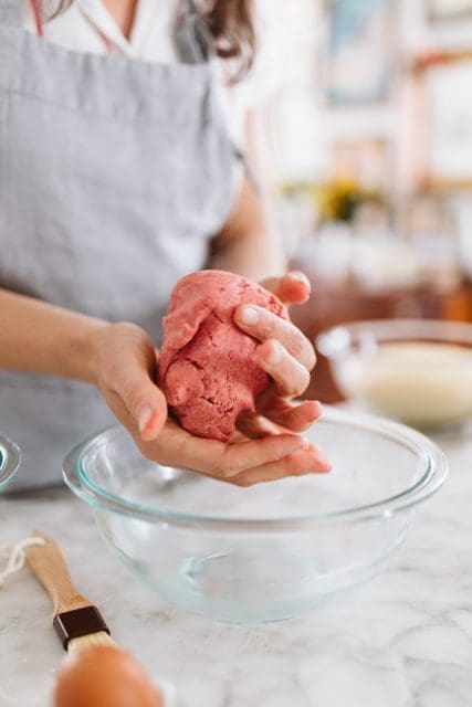 Because the strawberry dough has dehydrated strawberries, you may find that you need to add an extra teaspoon of milk to ensure that it r0lls without cracking.ย Don’t be shy about adding just a tiny splash of moisture and rerolling.