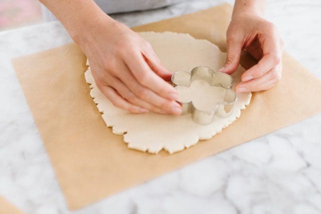Repeat until you have six flower shapes you’re happy with. Feel free to gather and reroll the dough if you need to.
