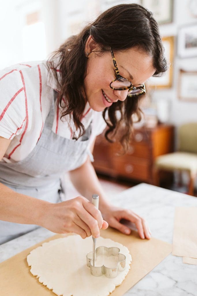 If you have trouble with cracking as you’re rolling out the dough, don’t fret.ย This topping dough can be malleable. Don’t worry about overworking it – it’s not precious.ย If cracking is an issue, add a teaspoon of milk, gather the dough, press together to rehydrate and try rolling again.ย Add another teaspoon if you really need to but you don’t want the dough too wet and sticky.ย If the dough does become too sticky, dust with just a bit of powdered sugar.
