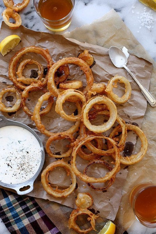 I feel like the original bar that inspired Hard Deck, would serve some killer onion rings. And Joy’s recipe for Beer Battered Onion Rings with Buttermilk Ranch Dressing fit the bill. She suggests making the dressing before the onion rings ‘cause the flavors need time to settle in the fridge. These are crispy and flavorful and the beer adds a welcome depth and bite to the batter. It would never occur to me to make onion rings at home but she insists they’re super-easy. So go ahead and give them a whirl without a second thought, ‘cause you think up there and you’re dead.